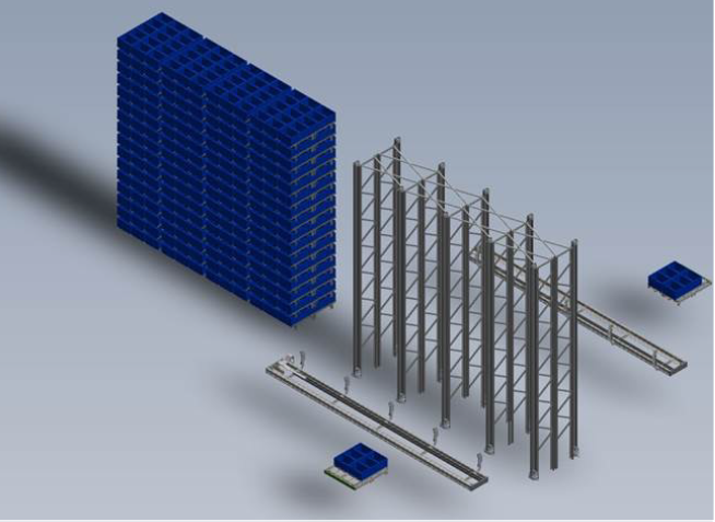 Our Standarized Scalable Solution is an extreme fast automated storage and retrieval system for a wide variety of bins, trays, and other small loads. It is designed to provide a high density storage combined with a high throughput.  The scalable options and the interaction with the sorting algorithms and the In& Output section block make sure this system creates a sorting and sequencing function adapted to your particular situation. Because this scalable systems is designed with standardized components it is an attractive solution: it combines the advantages of a standard solution adapted to your situation.